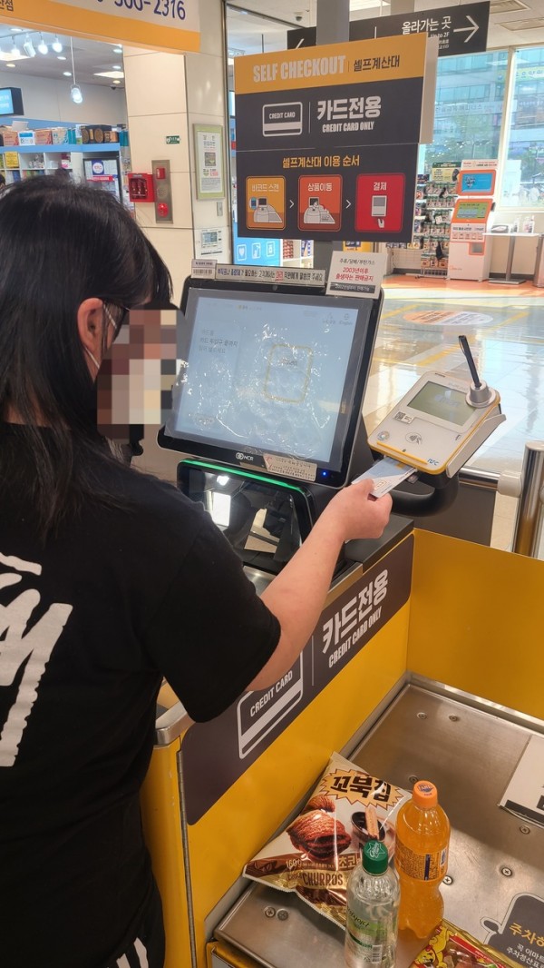 상품을 고르고, 바코드를 찾아 키오스크에 찍고, 결제를 하고, 영수증을 확인하는 등