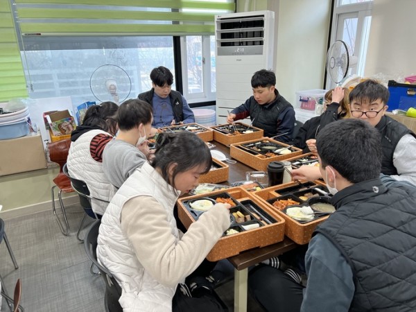 2022년 새해 설맞이 특별급식 페이지 정보 작성자 행복한학교쪽지보내기 자기소개 아이디로 검색 전체게시물쪽지보내기 자기소개 아이디로 검색 전체게시물 댓글 0건 조회 1,457회 작성일 22-02-16 15:03 본문 2022년 설날을 맞이하여 특별급식을 진행하였습니다.코로나19로 인하여 외부에서 특별급식을 진행하지 못하고 기관에서 이용인자치회의를 통하여 먹고 싶은 음식을 정하여 진행하였습니다!! 이용인들이 따뜻하게 먹을 수 있도록 발열 도시락을 준비하였습니다! 이용인들과 함께 특별급식을 맛있게 먹었습니다! 목록 이전글2월 작업훈련팀 사회적응훈련 프로그램 22.02.24 다음글1월 보호작업팀 지역사회자원활용훈련 22.01.17 댓글목록 댓글목록 등록된 댓글이 없습니다.
