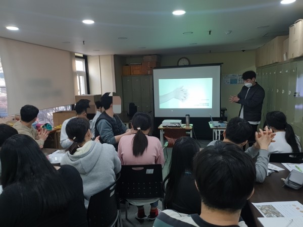 코로나19 예방 수칙과 올바른 손씻기 방법에 대해 교육을 진행하고 실습을 진행했습니다.
