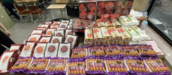 짜잔~~ 집에서 가족들과 함께 먹을 수 있는 소세지, 계란, 라면, 떡볶이,바나나들을 준비했답니다!!