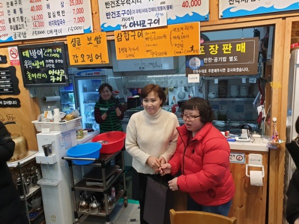 착한이웃(해물보따리) 페이지 정보 작성자 행복한학교쪽지보내기 자기소개 아이디로 검색 전체게시물쪽지보내기 자기소개 아이디로 검색 전체게시물 댓글 0건 조회 1,575회 작성일 20-01-31 14:06 본문 행복한학교에 먹는 즐거움을 선사해주는 "해물보따리" 이번에도 방문했습니다.이용인들의 행복한 표정을 보니, 사장님의 정성과 사랑이 한 명, 한 명에게 잘 전달된 것 같습니다 ^0^항상 정성이 가득 담긴 음식을 맛있게 먹기만 할 수 없어서 행복한학교의 자랑 더치커피를 사장님께 선물로 드렸습니다~이용인 대표로 회장님이 전달해드리니 사장님이 더 기뻐해 주신 것 같습니다. 목록 이전글2020년 1분기 이용인 안전교육 20.02.28 다음글2019년 이용인 종무식 19.12.24 댓글목록 댓글목록 등록된 댓글이 없습니다.