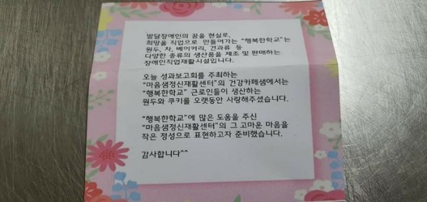 마음샘정신재활센터에서 운영하는 건강카페샘에서는