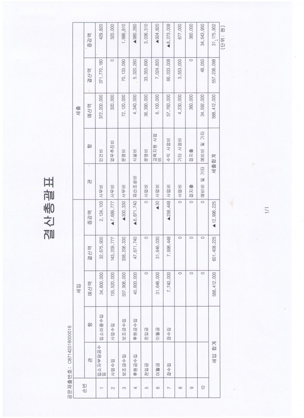 2017년 회계결산서 공고